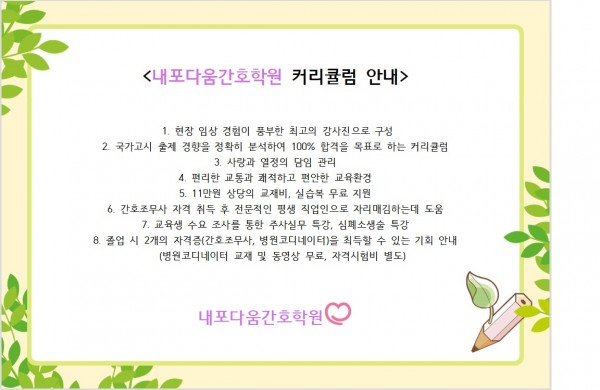 내포다움간호학원 커리큘럼 안내